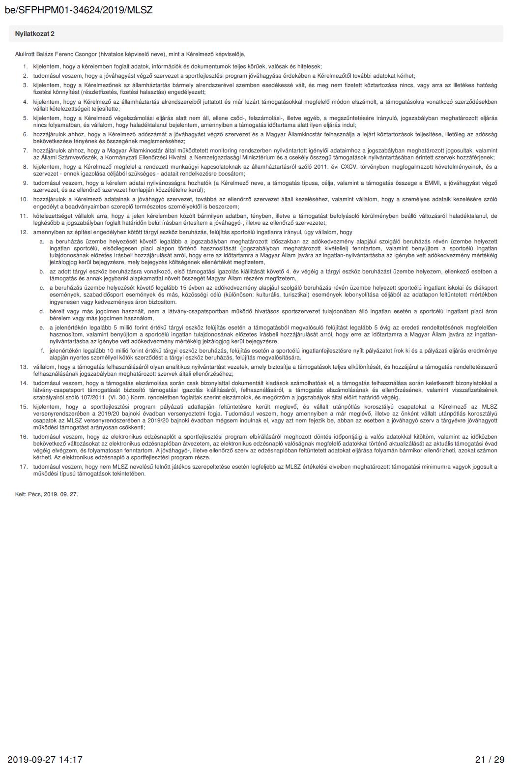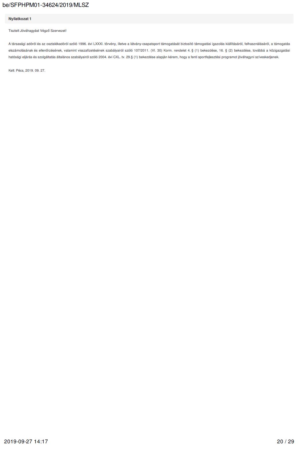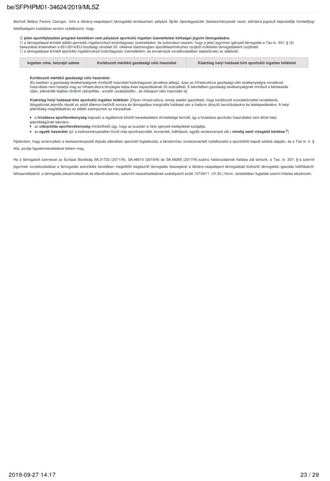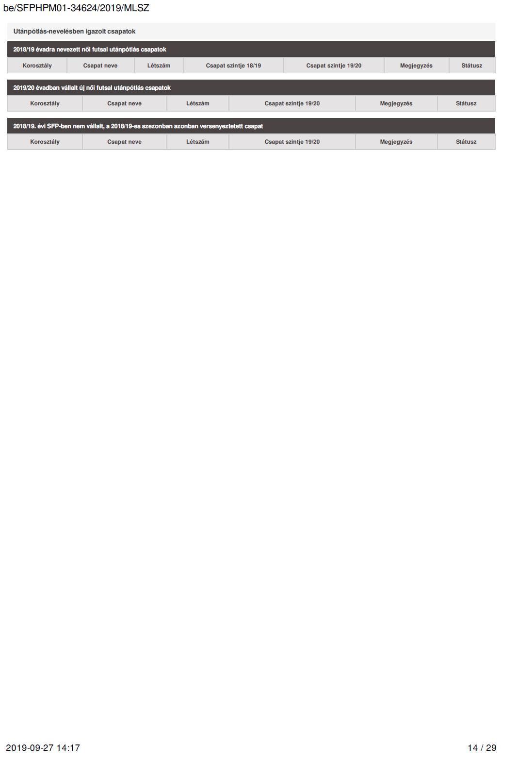 SFP és MLSZ jóváhagyó határozat - 2019/2020. évad