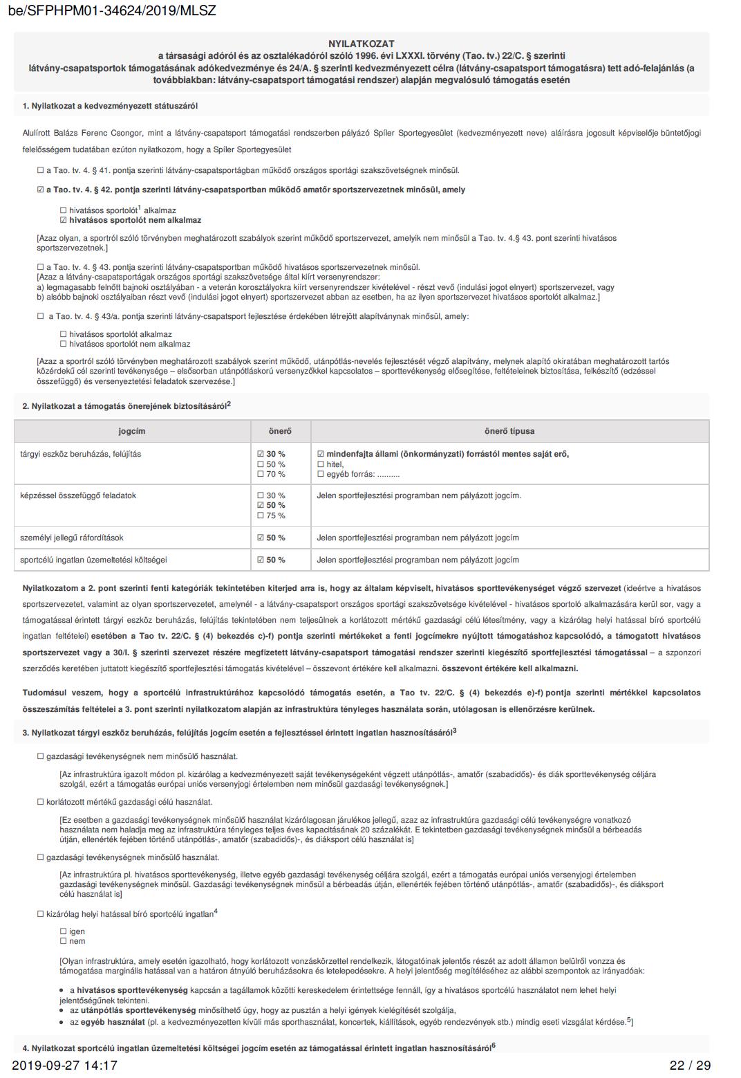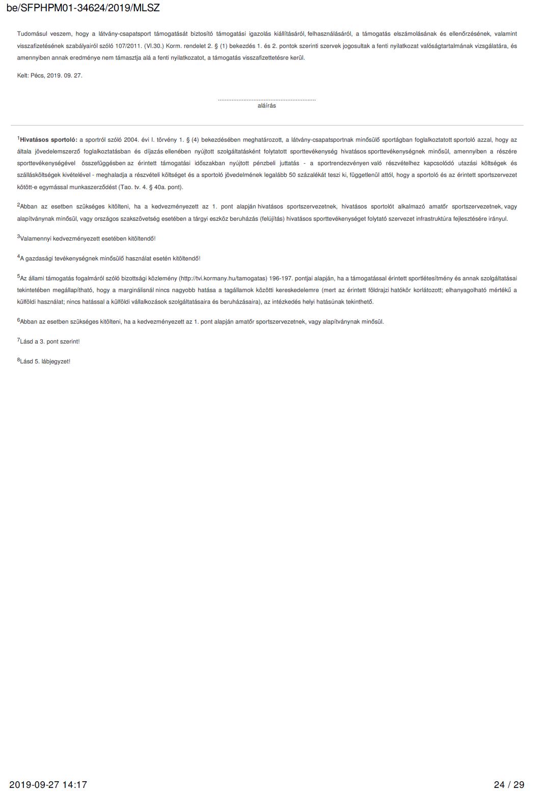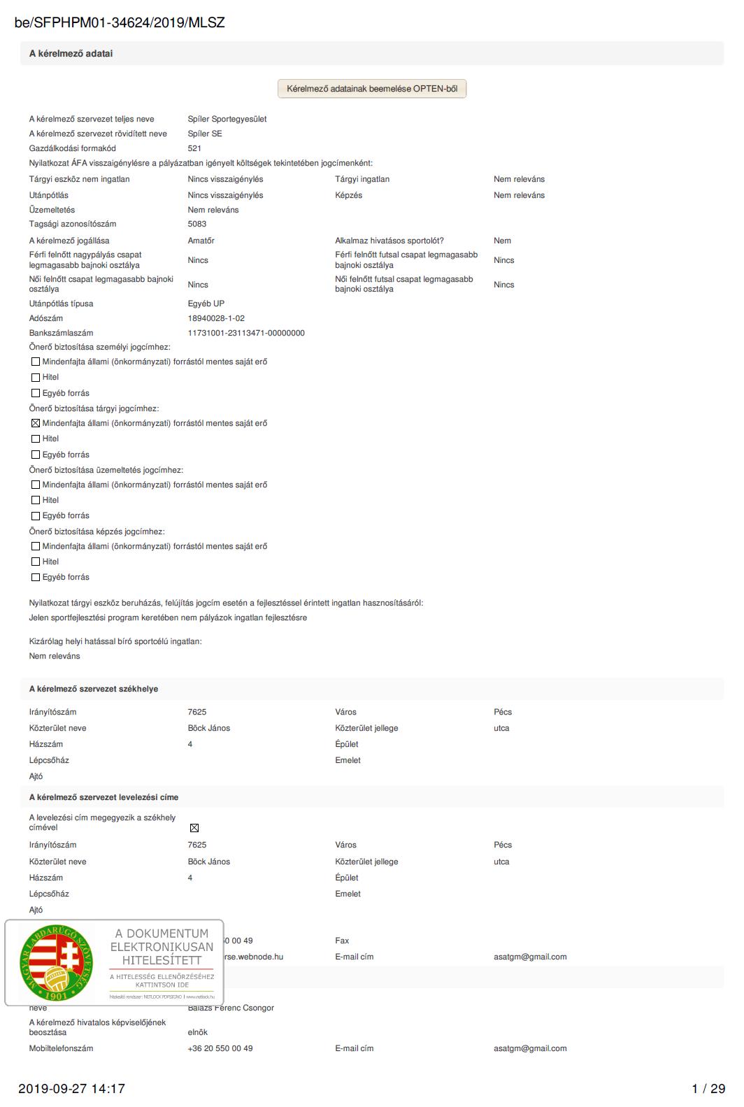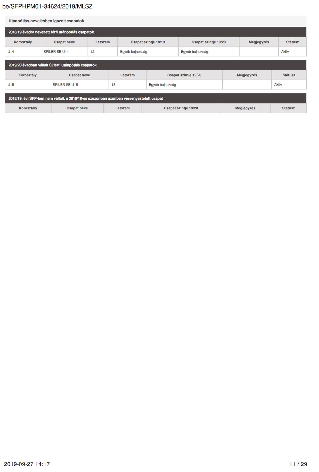 SFP és MLSZ jóváhagyó határozat - 2019/2020. évad