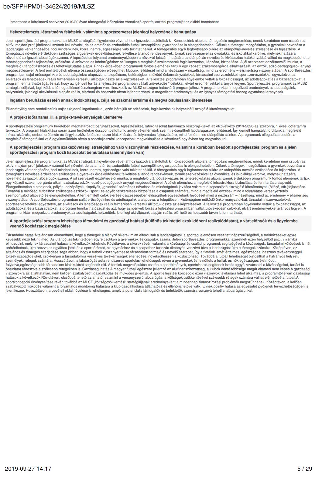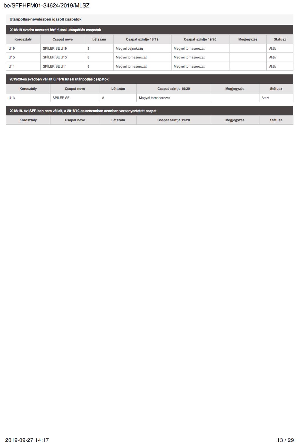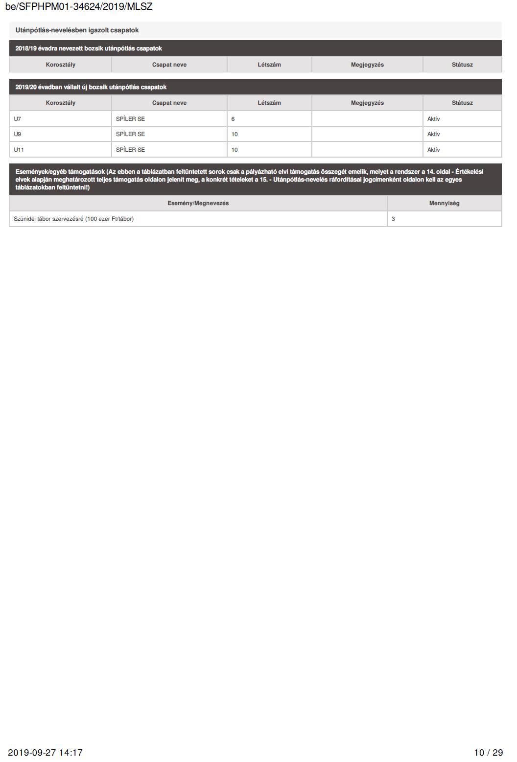 A SPÍLER Sportegyesület sportfejlesztési programja 2019/2020. szezon
